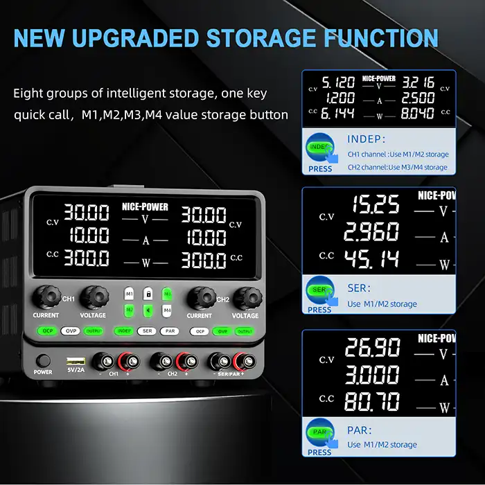 مشخصات فنی منبع تغذیه حافظه دار دوکاناله آزمایشگاهی نایس پاور مدل NicePower SPPS30102KD