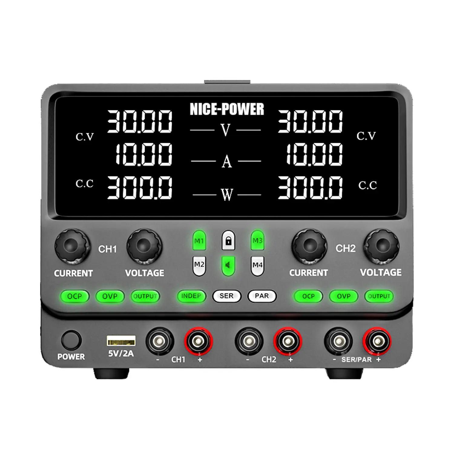 منبع تغذیه آزمایشگاهی دوکاناله حافظه دار سوئیچینگ 30V 10A نایس پاور مدل Nice-Power SPPS3010-2KD